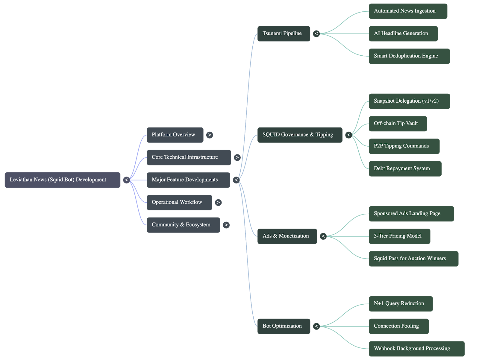 The Squid DAO Bot is a self-hosted Telegram bot that provides real-time governance monitoring, automated alerts, AI-powered proposal summaries, and in-bot voting for the SQUID DAO. It serves as core infrastructure for DAO participation, lowering the barrier for token holders to stay informed and vote.